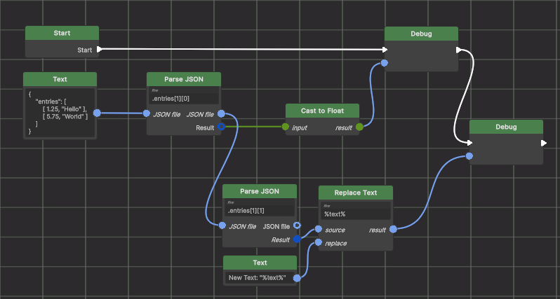 This example will debug print first “5.75” and then “New Text: World”. Wait for our next Release!